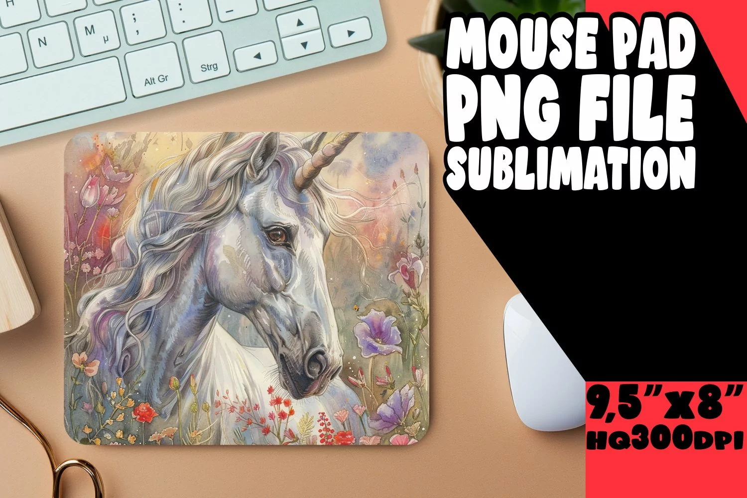 Unicorn Clipart Mouse Pad Office Supplies Sublimation Design Unicorn Sublimation Sublimation Printing Mouse Pad Design Mouse Mat Flower Watercolor Sublimation Watercolor Mouse Pad