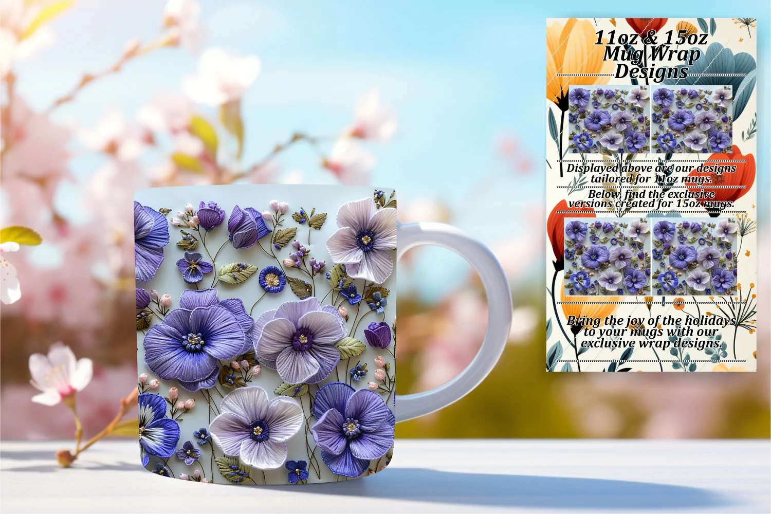 Embroidered Floral Mug Design - Sublimation 11oz 15oz example image 1