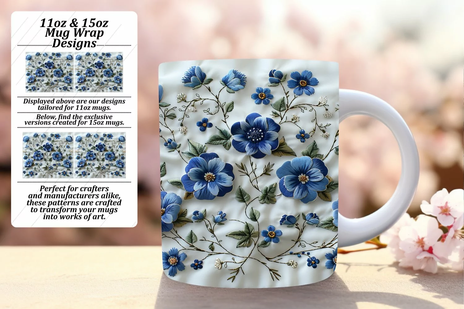 Flower Clipart Flower Pattern Coffee Mug Sublimation Design Flower Sublimation Design 3d Flower Design 15oz Mug Wrap Flower Mug Wrap Embroidered Flower 3d Flower Pattern