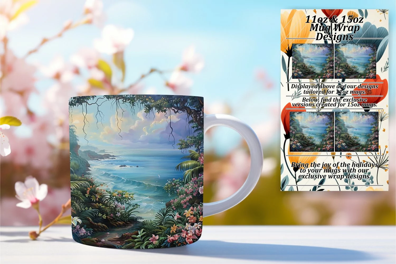 Flower Clipart Flower Pattern Coffee Mug Sublimation Design Flower Sublimation Design 3d Flower Design 15oz Mug Wrap Flower Mug Wrap Landscape Sublimation Design 3d Flower Pattern