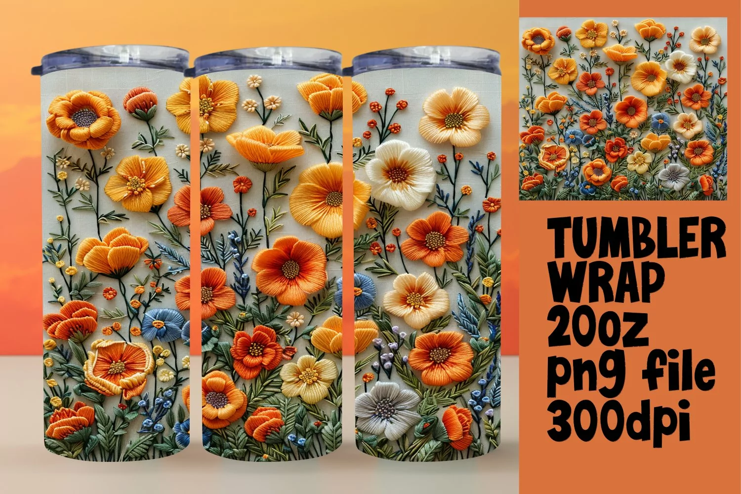Embroidered Flower Spring Tumbler Wrap - Sublimation Joy