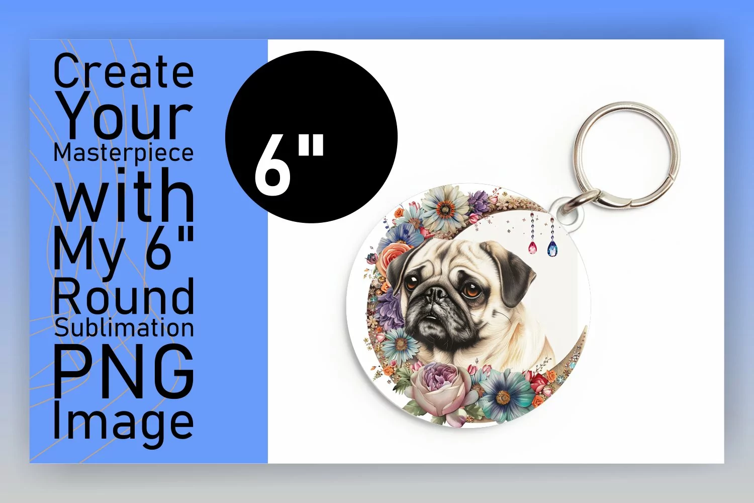 Round Ornaments Watercolor Dog Sublimation Design Sublimation Printing Flower Sublimation Car Coaster Dog Sublimation Design Keychain Sublimation Keychain Sublimation Design Dog Breeds Png