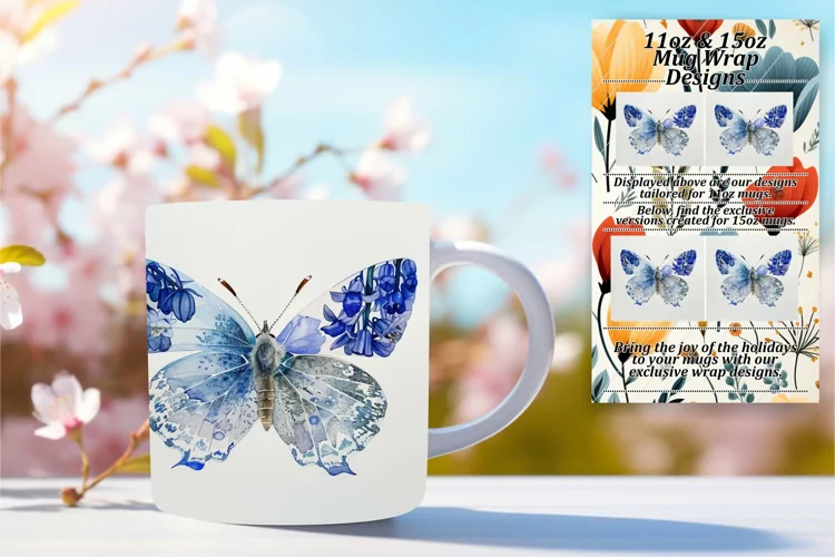 Flower Pattern Coffee Mug Sublimation Design Flower Sublimation Design Butterfly Sublimation Design 15oz Mug Wrap Flower Mug Wrap Spring Mug Wrap 3d Butterfly Mug Wrap 3d Butterfly Design