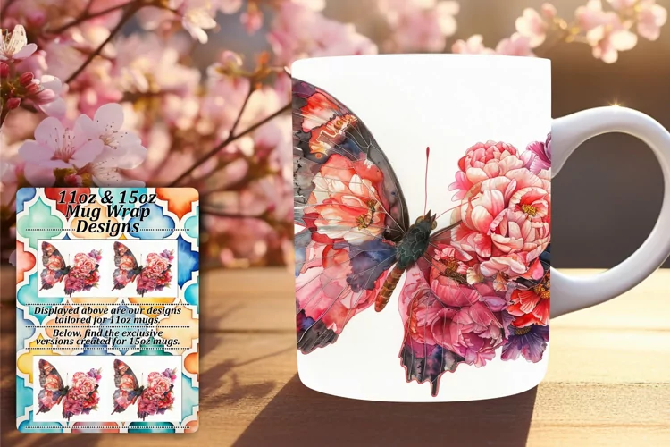 Flower Pattern Coffee Mug Sublimation Design Flower Sublimation Design Butterfly Sublimation Design 15oz Mug Wrap Flower Mug Wrap Spring Mug Wrap 3d Butterfly Mug Wrap 3d Butterfly Design
