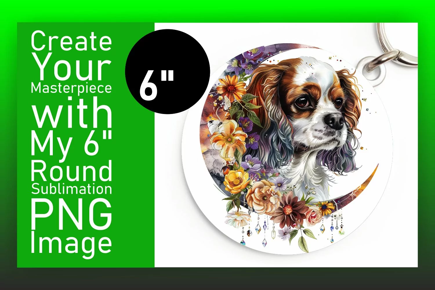 Round Ornaments Watercolor Dog Sublimation Design Sublimation Printing Flower Sublimation Car Coaster Dog Sublimation Design Keychain Sublimation Keychain Sublimation Design Dog Breeds Png