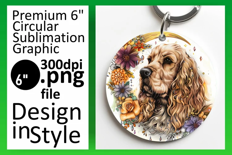 Round Ornaments Watercolor Dog Sublimation Design Sublimation Printing Flower Sublimation Car Coaster Dog Sublimation Design Keychain Sublimation Keychain Sublimation Design Dog Breeds Png