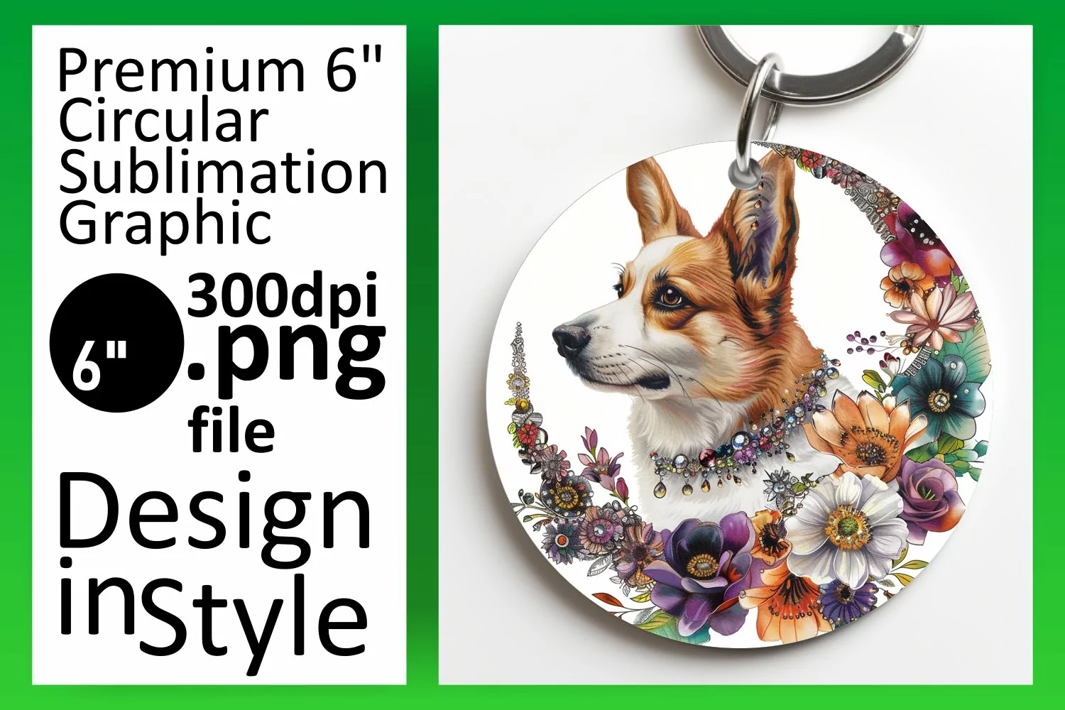 Round Ornaments Watercolor Dog Sublimation Design Sublimation Printing Flower Sublimation Car Coaster Dog Sublimation Design Keychain Sublimation Keychain Sublimation Design Dog Breeds Png