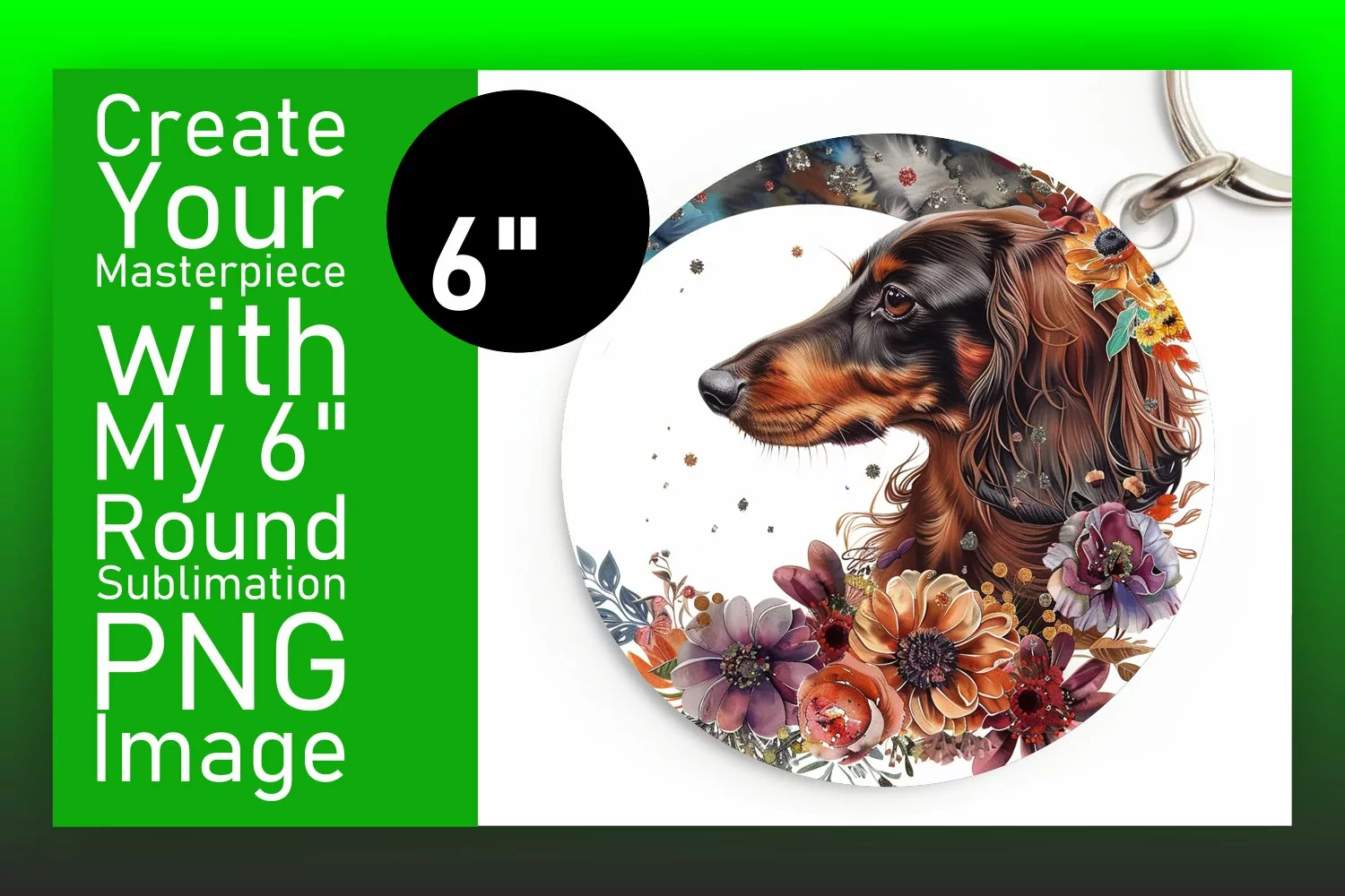 Round Ornaments Watercolor Dog Sublimation Design Sublimation Printing Flower Sublimation Car Coaster Dog Sublimation Design Keychain Sublimation Keychain Sublimation Design Dog Breeds Png