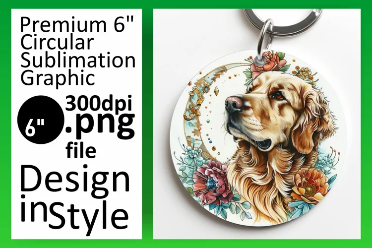 Round Ornaments Watercolor Dog Sublimation Design Sublimation Printing Flower Sublimation Car Coaster Dog Sublimation Design Keychain Sublimation Keychain Sublimation Design Dog Breeds Png