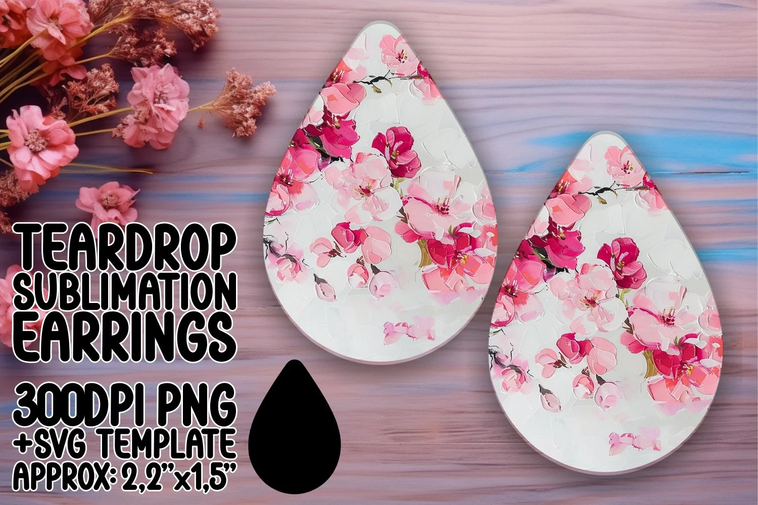 Watercolor Flower Flower Pattern Embroidery Pattern Sublimation Design Teardrop Earrings Teardrop Earring Png Teardrop Sublimation Teardrop Earring Sublimation Design 3d Earrings Sublimation Teardrp Earrings Template