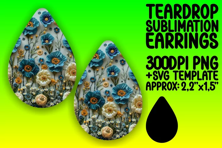 Flower Pattern Embroidery Pattern Sublimation Design Teardrop Earrings Embroidery Flower Teardrop Earring Png Teardrop Sublimation Teardrop Earring Sublimation Design 3d Earrings Sublimation Teardrp Earrings Template