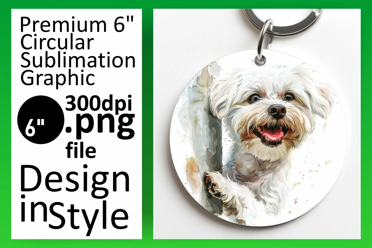 Round Ornaments Watercolor Dog Sublimation Design Sublimation Printing Flower Sublimation Car Coaster Dog Sublimation Design Keychain Sublimation Keychain Sublimation Design Dog Breeds Png