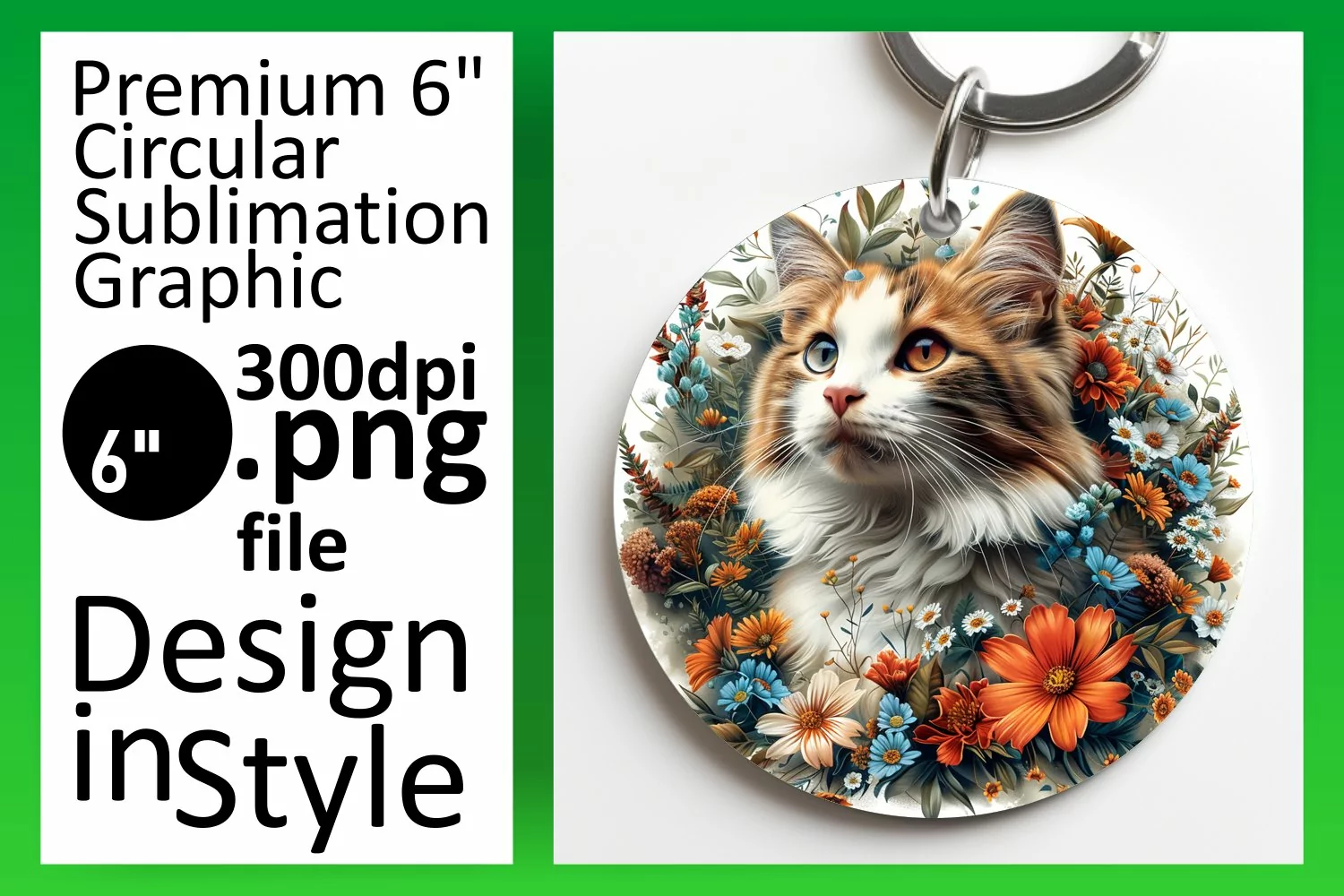 Cat Craze Sublimation Circle Design Keychain example image 1
