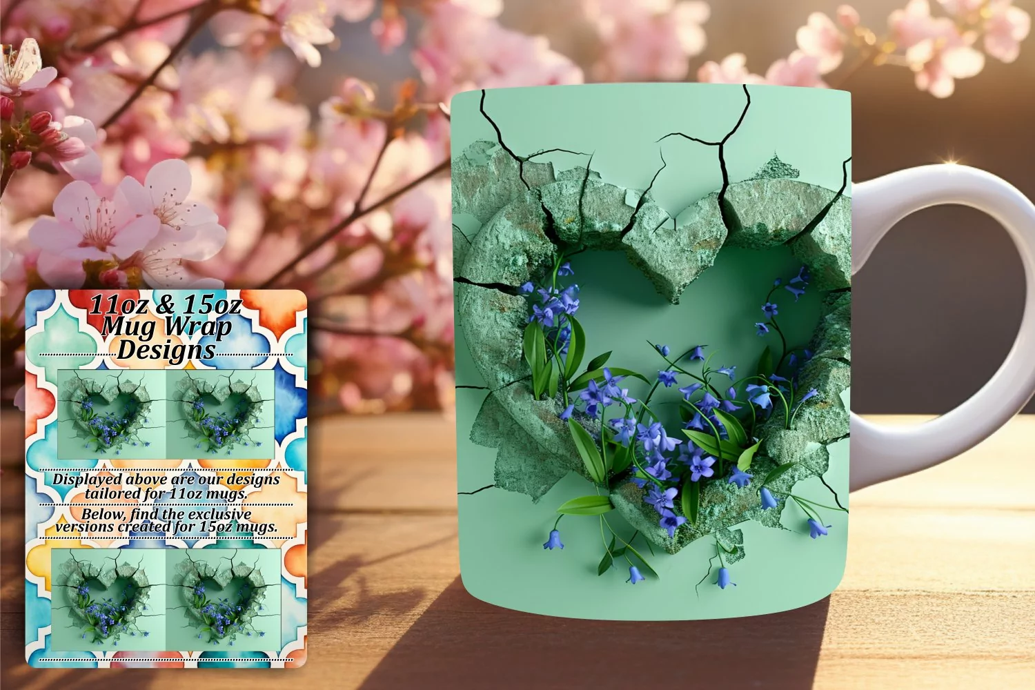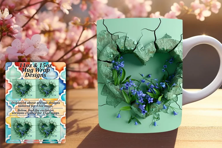 Coffee Cup Sublimation Design 11oz Mug Wrap 15oz Mug Wrap Valentines Mug Wrap 3d Mug Wrap 3d Hole In Wall Sublimation Glossy Sublimation 3d Heart Mug Wrap 3d Heart Sublimation Design