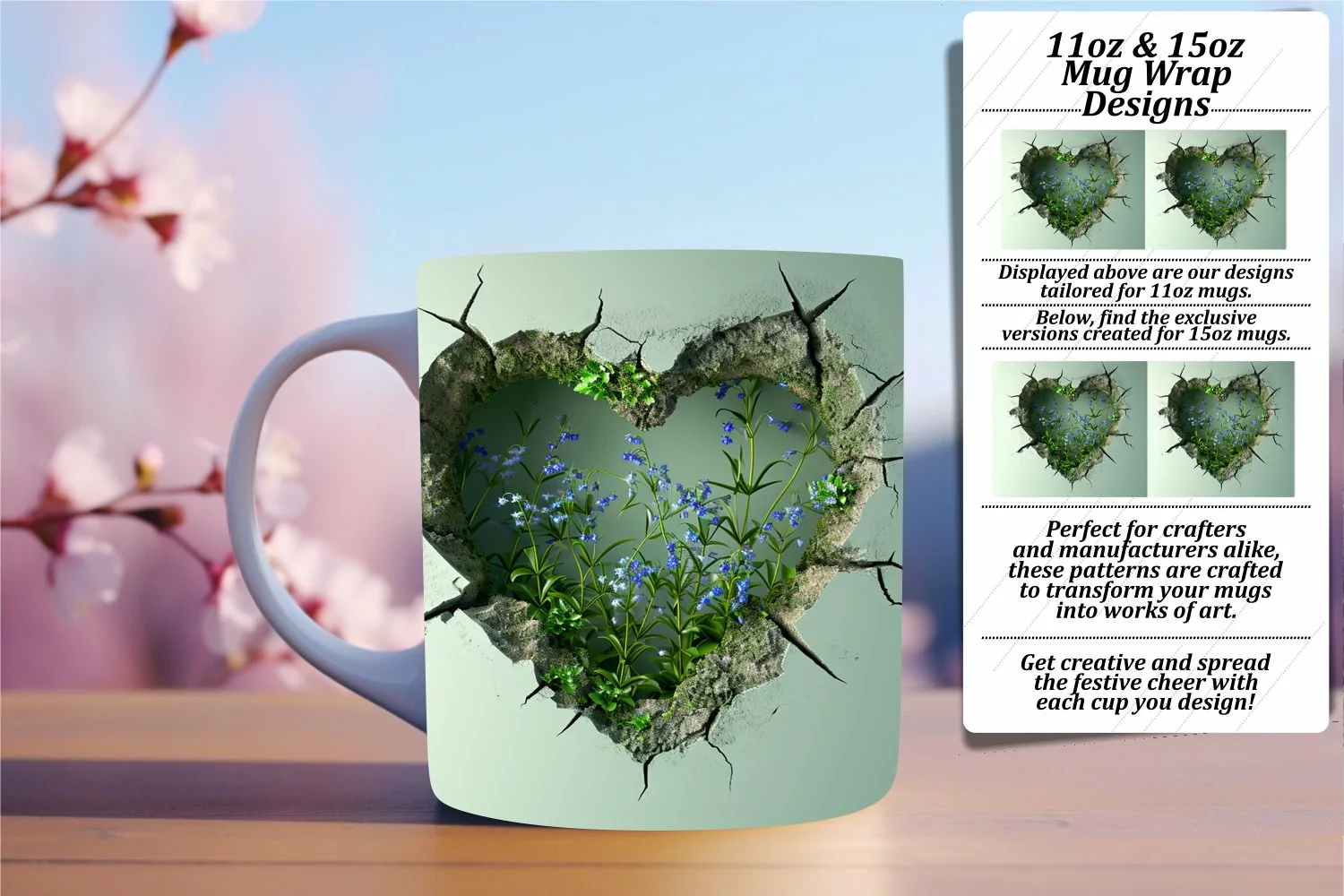 Garden Glory: 11oz/15oz Heart Mug Sublimation