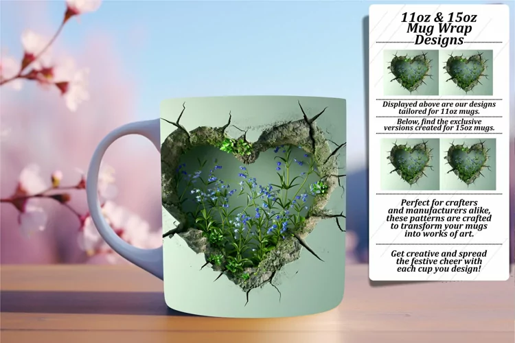 Coffee Cup Sublimation Design 11oz Mug Wrap 15oz Mug Wrap Valentines Mug Wrap 3d Mug Wrap 3d Hole In Wall Sublimation Glossy Sublimation 3d Heart Mug Wrap 3d Heart Sublimation Design