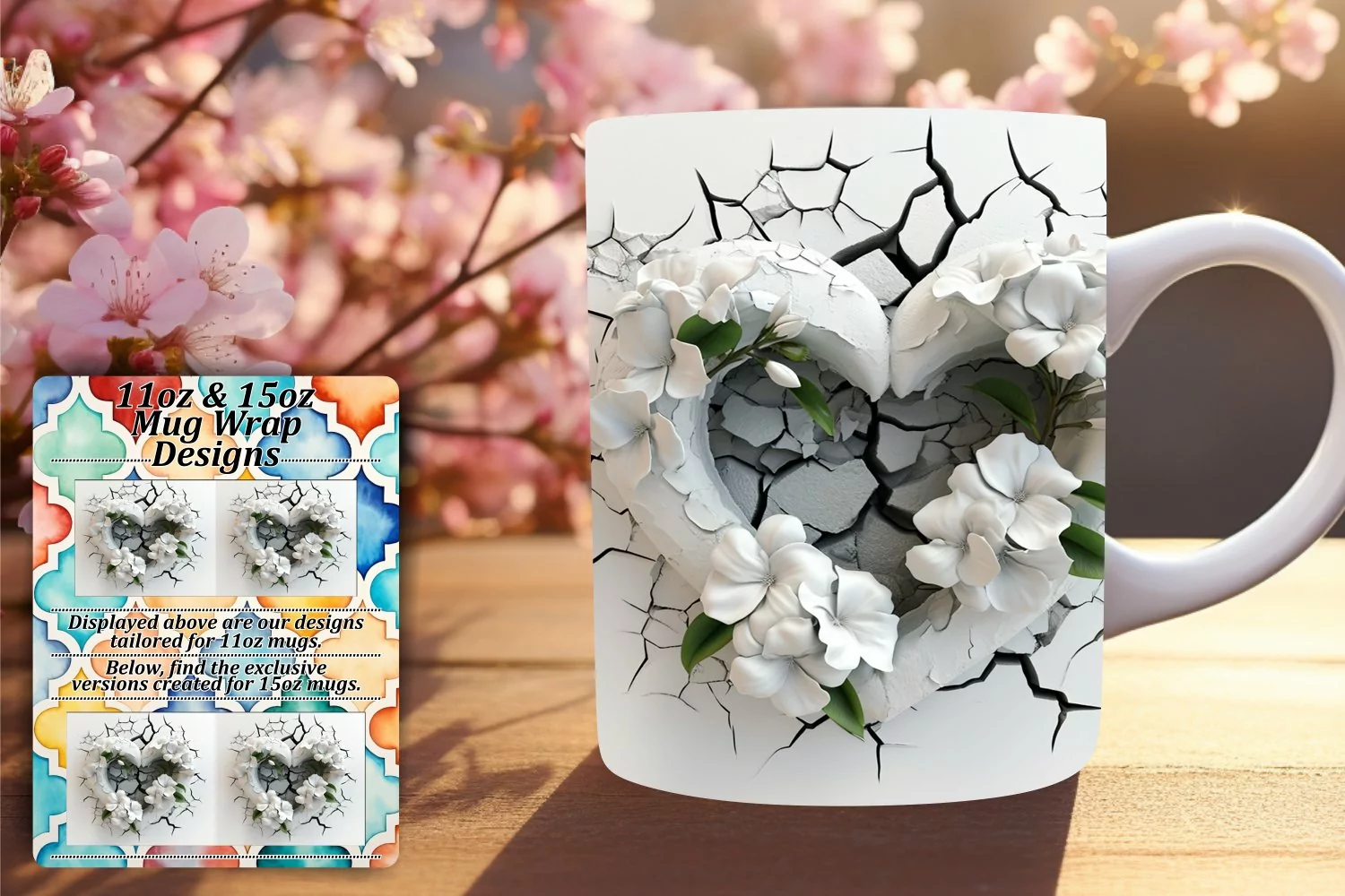 Coffee Cup Sublimation Design 11oz Mug Wrap 15oz Mug Wrap Valentines Mug Wrap 3d Mug Wrap 3d Hole In Wall Sublimation Glossy Sublimation 3d Heart Mug Wrap 3d Heart Sublimation Design