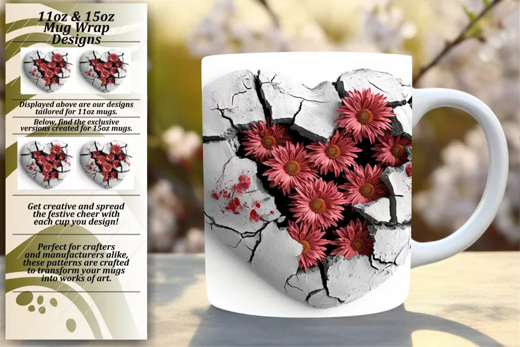 Coffee Cup Sublimation Design 11oz Mug Wrap 15oz Mug Wrap Valentines Mug Wrap 3d Mug Wrap 3d Hole In Wall Sublimation Glossy Sublimation 3d Heart Mug Wrap 3d Heart Sublimation Design