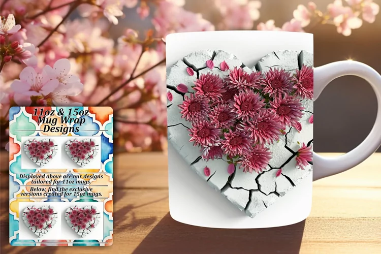 Coffee Cup Sublimation Design 11oz Mug Wrap 15oz Mug Wrap Valentines Mug Wrap 3d Mug Wrap 3d Hole In Wall Sublimation Glossy Sublimation 3d Heart Mug Wrap 3d Heart Sublimation Design