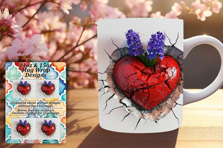 Coffee Cup Sublimation Design 11oz Mug Wrap 15oz Mug Wrap Valentines Mug Wrap 3d Mug Wrap 3d Hole In Wall Sublimation Glossy Sublimation 3d Heart Mug Wrap 3d Heart Sublimation Design