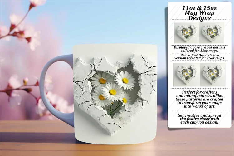 Coffee Cup Sublimation Design 11oz Mug Wrap 15oz Mug Wrap Valentines Mug Wrap 3d Mug Wrap 3d Hole In Wall Sublimation Glossy Sublimation 3d Heart Mug Wrap 3d Heart Sublimation Design