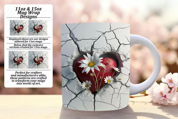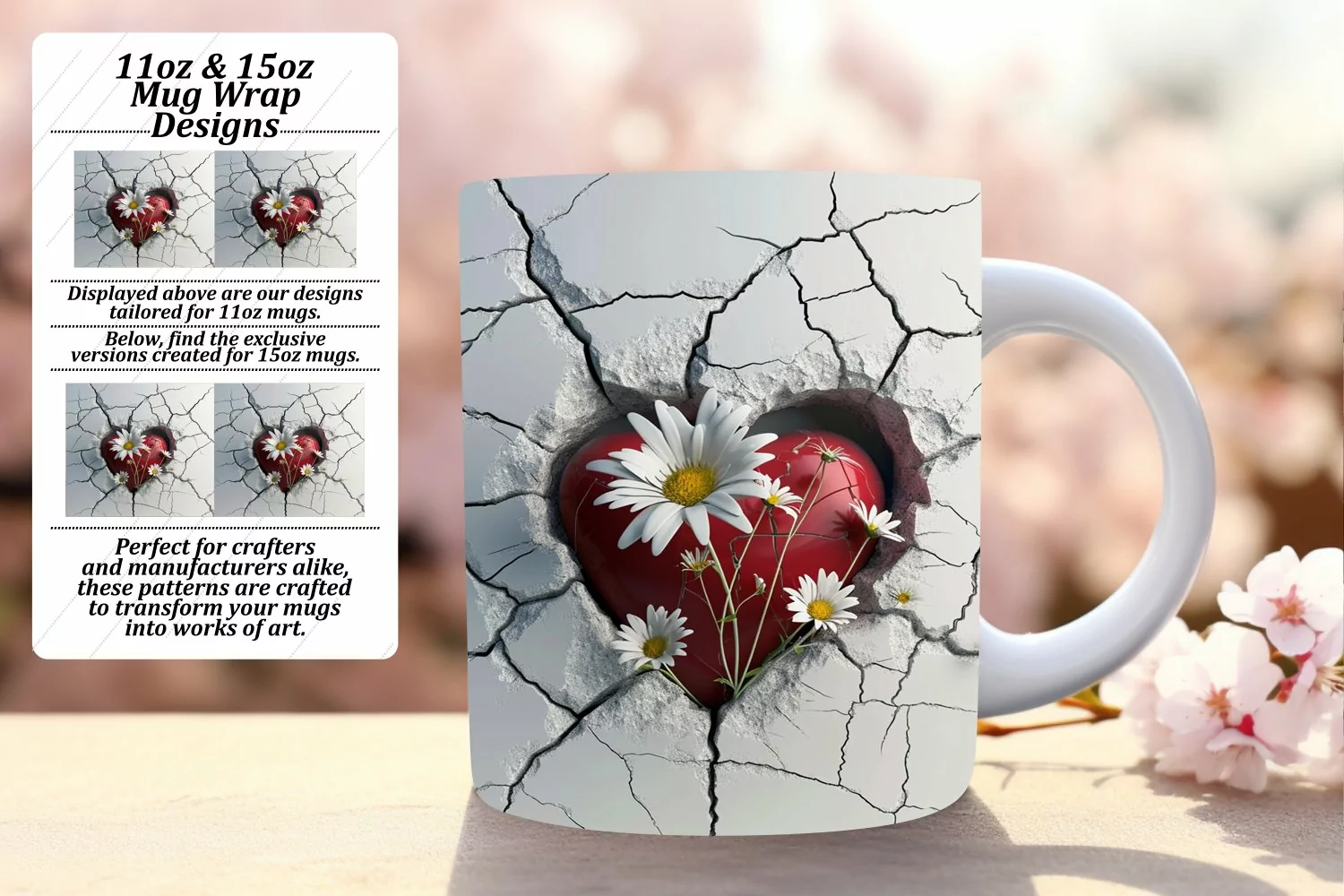 Coffee Cup Sublimation Design 11oz Mug Wrap 15oz Mug Wrap Valentines Mug Wrap 3d Mug Wrap 3d Hole In Wall Sublimation Glossy Sublimation 3d Heart Mug Wrap 3d Heart Sublimation Design