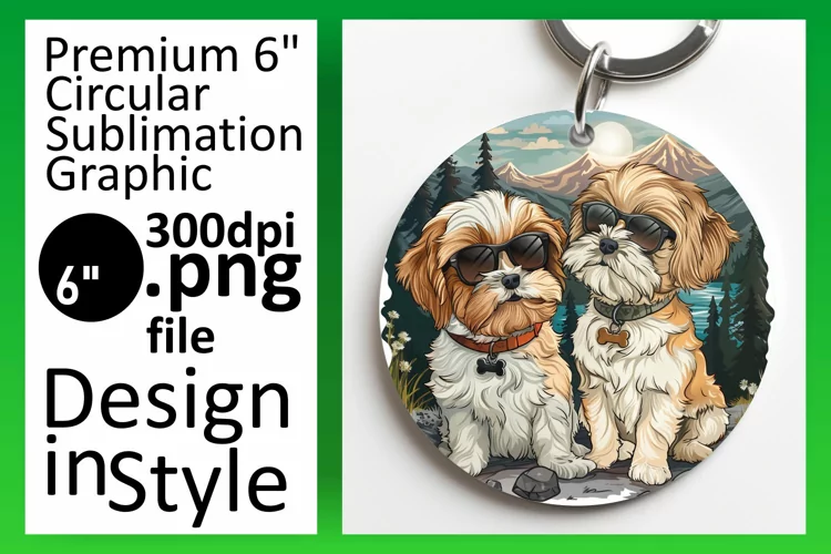 Round Ornaments Watercolor Dog Sublimation Design Sublimation Printing Flower Sublimation Car Coaster Dog Sublimation Design Keychain Sublimation Keychain Sublimation Design Dog Breeds Png