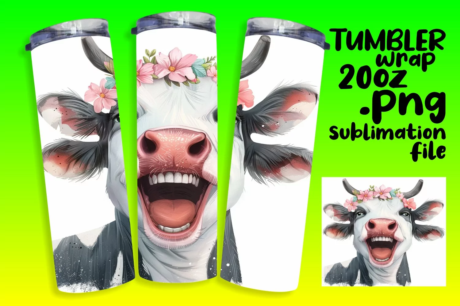 Cheerful Cow Watercolor Tumbler Wrap - 20oz, Farmhouse example image 1