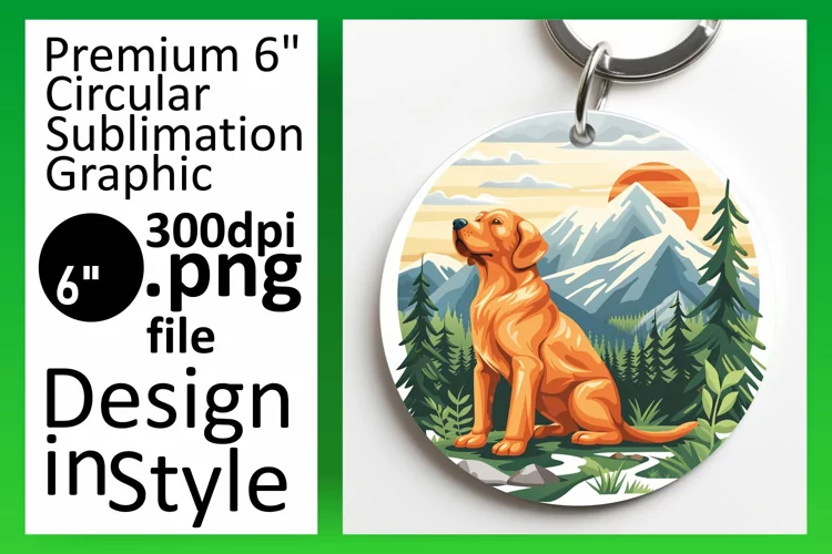 Dog in the Wild Circle Design Sublimation Keychain PNG example image 1