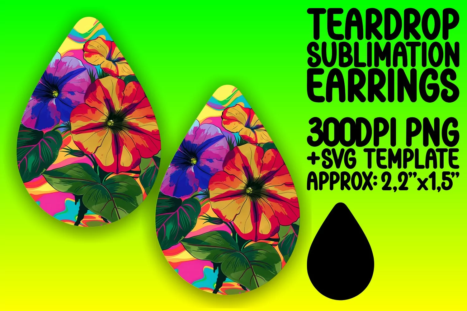 Vivid Floral Pattern Teardrop Earring Design Prints example image 1