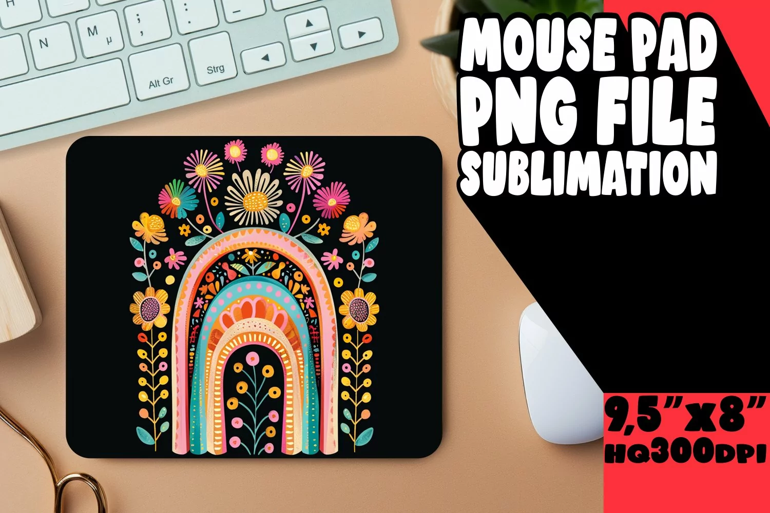 Flower Pattern Mouse Pad Office Supplies Sublimation Design Sublimation Printing Rainbow Sublimation Design Spring Pattern Png Mouse Pad Design Mouse Mat Flower Mousepad Sublimation