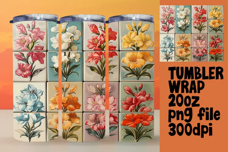 Flower Pattern Sublimation Design Flower Sublimation Straight Tumbler Skinny Tumbler Wrap Vintage Tumbler Wrap Pop Art Png Pattern Tumbler Wrap 3d Flower Pattern Abstract Pattern Sublimation Design