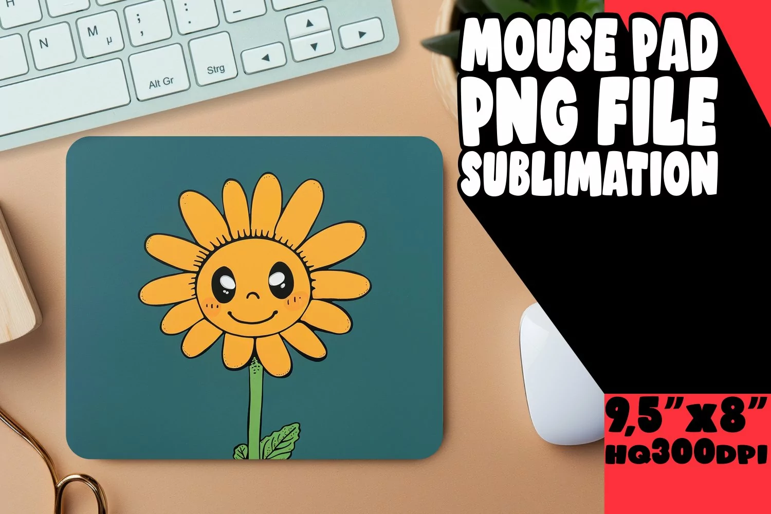 Sunny Retro Bouquet: Mouse Pad Smiling Flower Sublimation