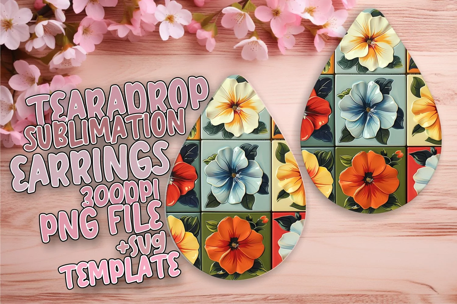 Radiant Floral Sublimation Teardrop Earring Design PNG example image 1