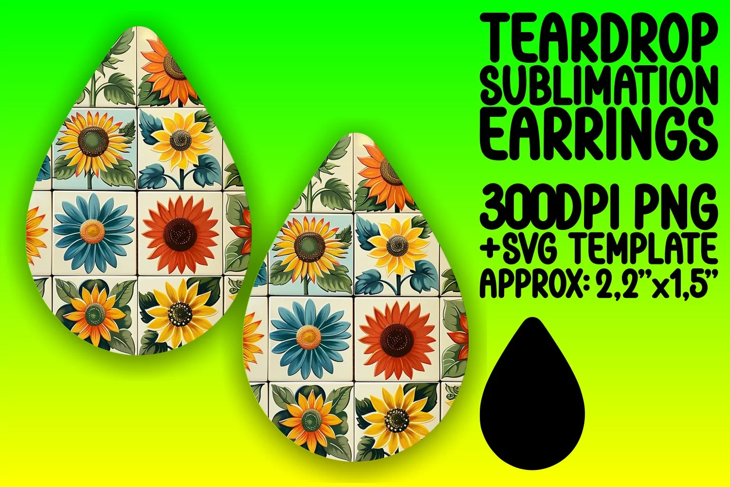 Summer Bloom Sublimation Teardrop Earring Design PNG example image 1