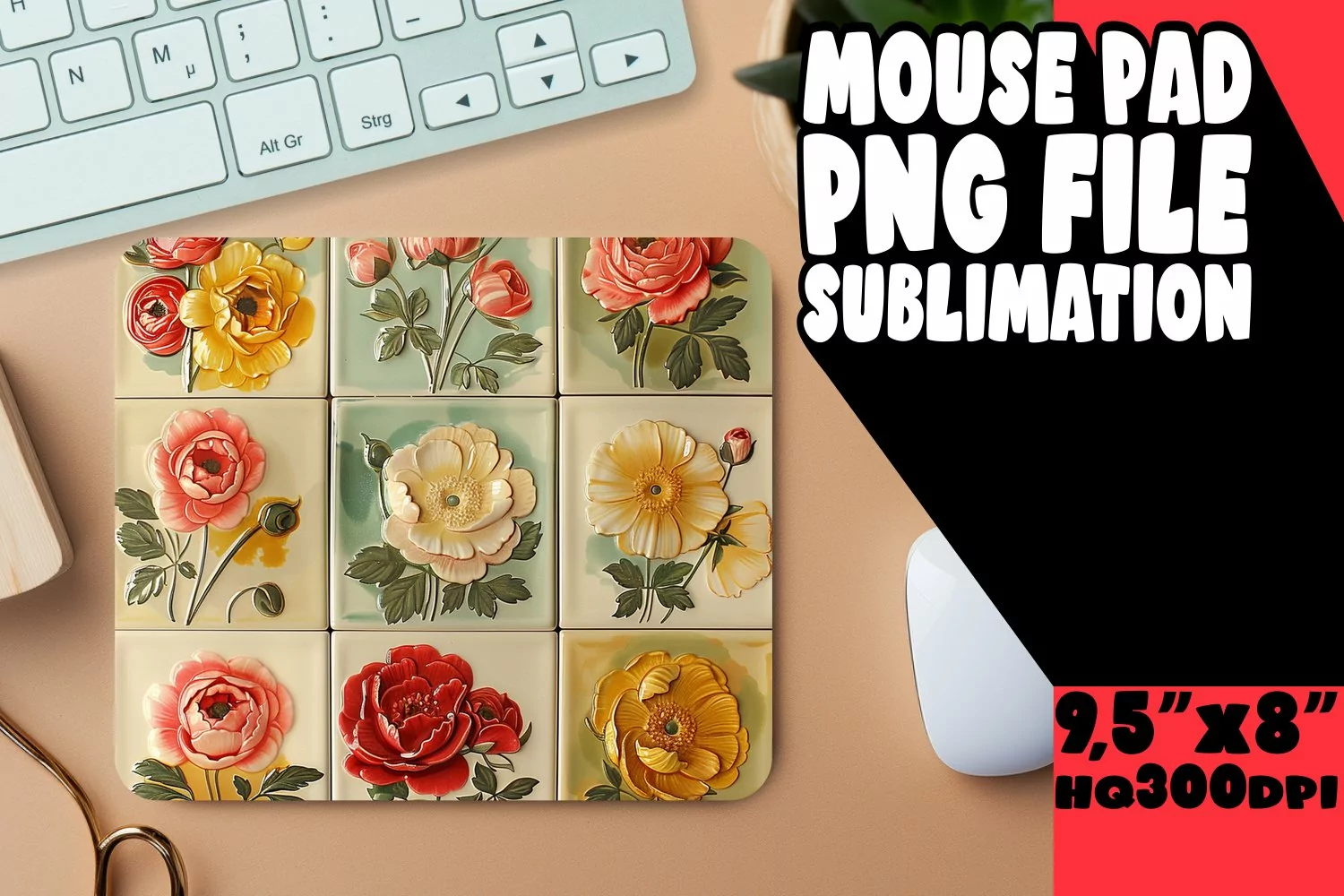 Stylish Blossom Sublimation Mouse Pad Design PNG example image 1