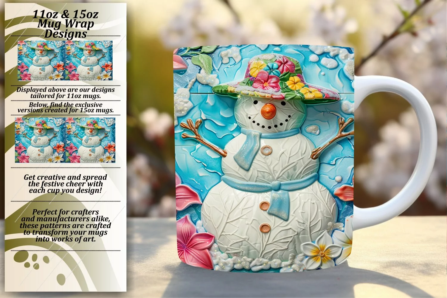 Christmas Cheer Snowman Mug Wrap 11oz/15oz Summer Spirit example image 1