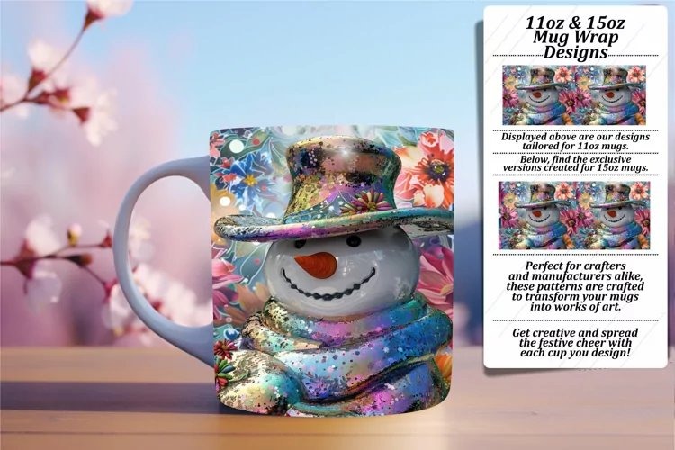 Winter Holiday Snowman Mug Wrap 11oz/15oz Seasonal Wonder example image 1
