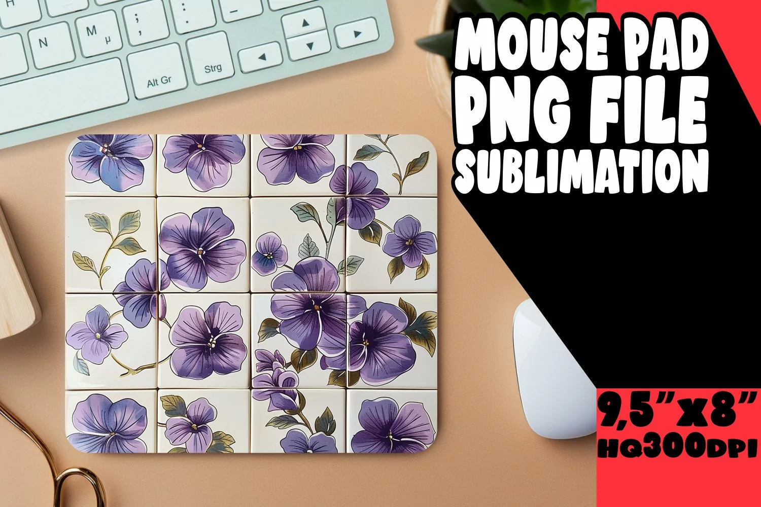 Tropical Flower Sublimation Mouse Pad Design PNG example image 1