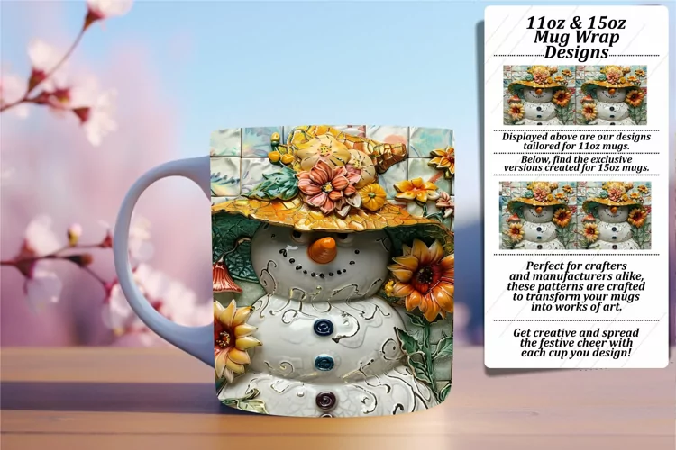 Christmas Cheer Snowman Mug Wrap 11oz/15oz Summer Snow Fest