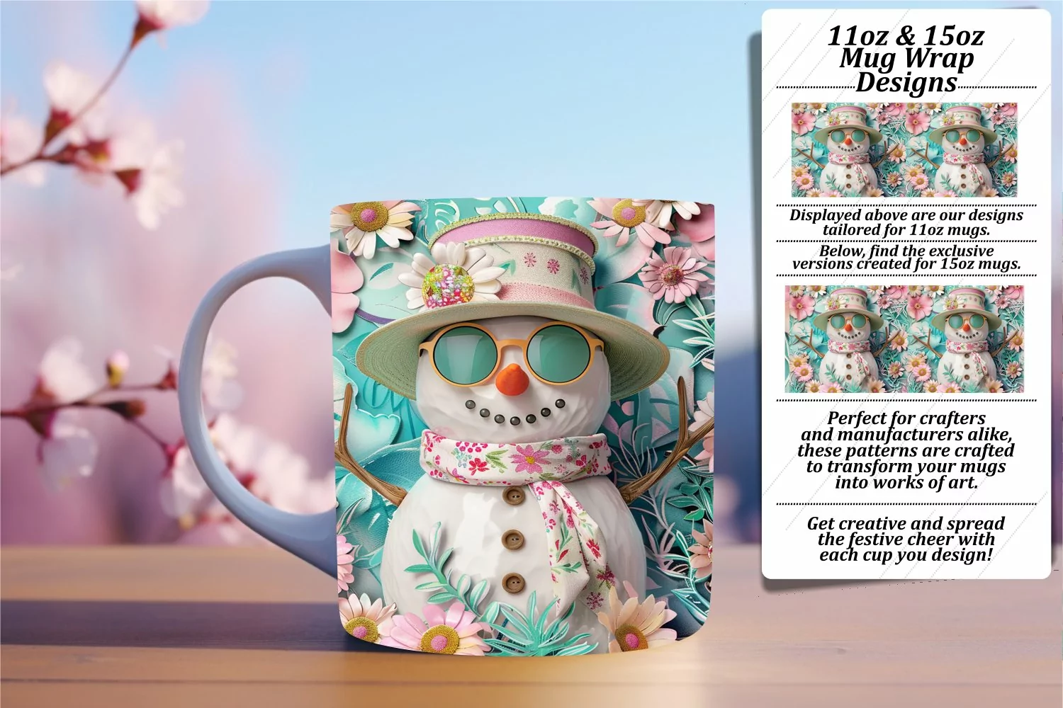 Christmas Cheer Snowman Mug Wrap 11oz/15oz Summer Joy example image 1