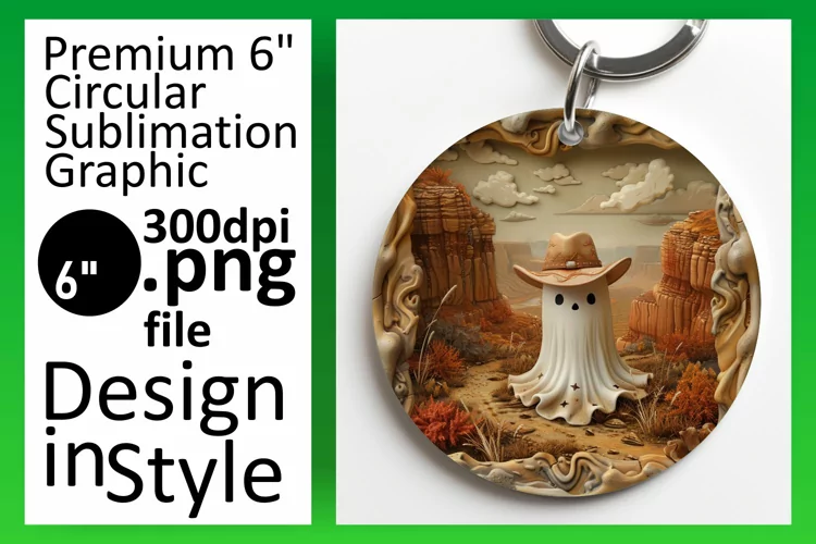 3D Halloween Round Design Keychain Fall Sublimation example image 1
