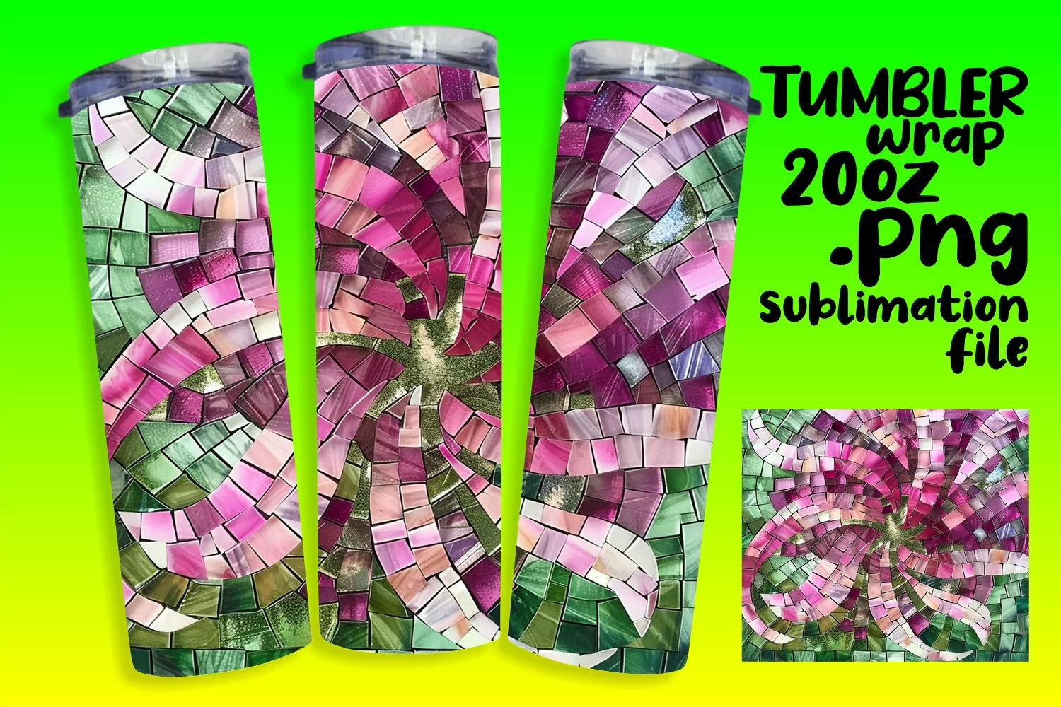 Sparkly Mosaic Flower Tumbler Wrap Sublimation 20oz example image 1