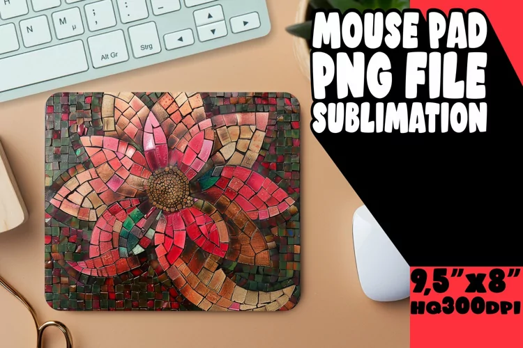 Abstract Mosaic Flower Mouse Pad Design PNG example image 1