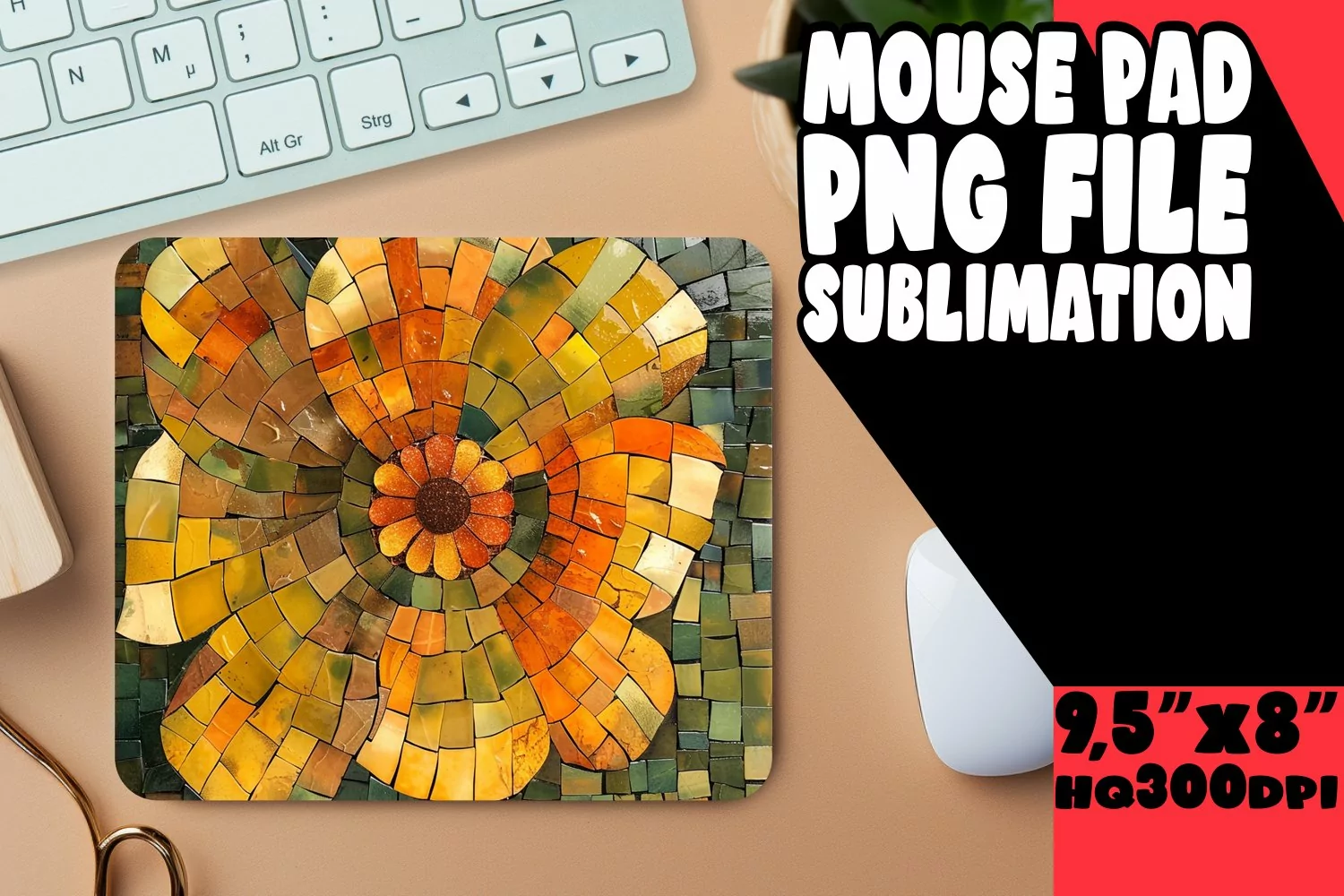 Abstract Mosaic Flower Mouse Pad Design PNG example image 1