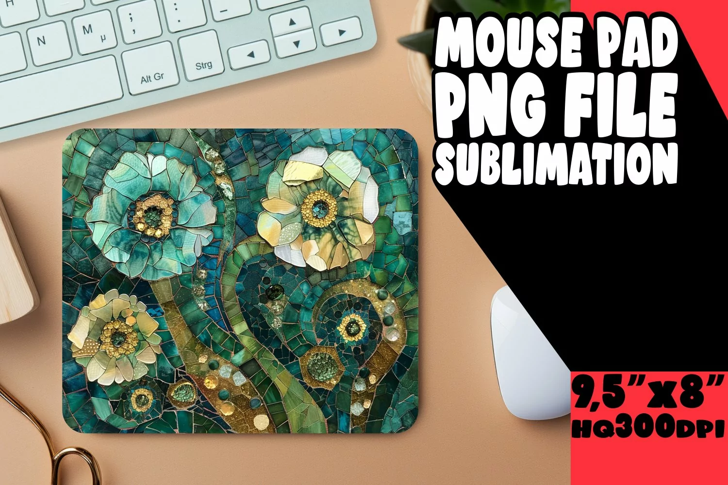 Sparkly Mosaic Flower Mouse Pad Art PNG example image 1