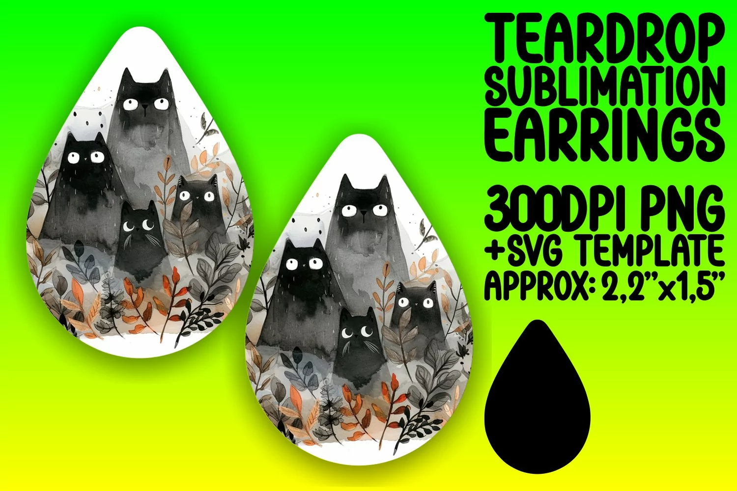 Watercolor Halloween Teardrop Earring Design Sublimation