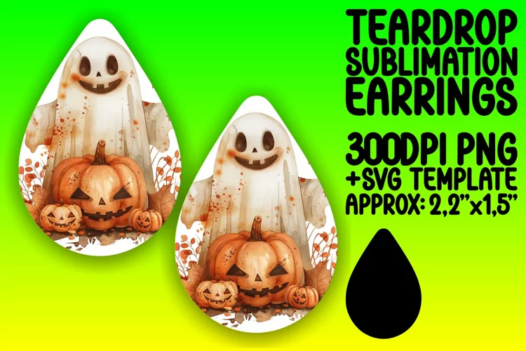 Halloween Pattern Sublimation Design Teardrop Earrings Halloween Ghost Png Teardrop Earring Png Teardrop Sublimation Teardrop Earring Sublimation Design 3d Earrings Sublimation Teardrp Earrings Template Autumn Teardrop