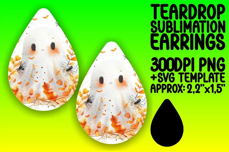 Halloween Pattern Sublimation Design Teardrop Earrings Halloween Ghost Png Teardrop Earring Png Teardrop Sublimation Teardrop Earring Sublimation Design 3d Earrings Sublimation Teardrp Earrings Template Autumn Teardrop