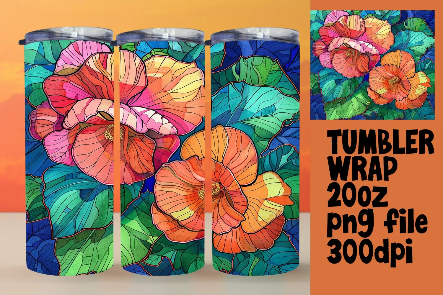 Bright Flower Wraps for 20oz Tumbler Sublimation example image 1